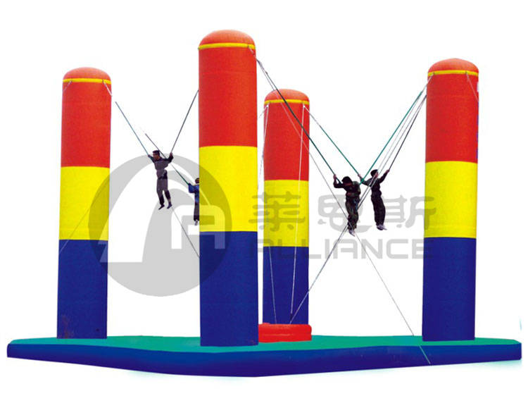 蹦极跳床分为充气蹦极和钢架蹦极,儿童和成人都可以参与,充气蹦极相对钢架蹦极更为安全一些,但是在经营过程都需要注意安全。 1、蹦极跳床适合在公园,休闲性广场,步行街等没有人流相对不拥挤的场所摆设. 2、蹦极跳床根据尺寸型号适合不同年龄段儿童或者成人,经营使用必须严格按照承重要求对游客进行选定,避免危险。 3、五岁以下的小朋友在玩蹦床时必需系好安全带,并在成人的监护下游玩. 4、运营者在每次蹦极开始前必需仔细检查安全带,确认安全无误方可让游客开始. 郑州莱恩斯游乐设备有限公司专业设计生产蹦极跳床,充气蹦极款式多样,适合不同年龄人群使用。欢迎有意向的客户来厂咨询。