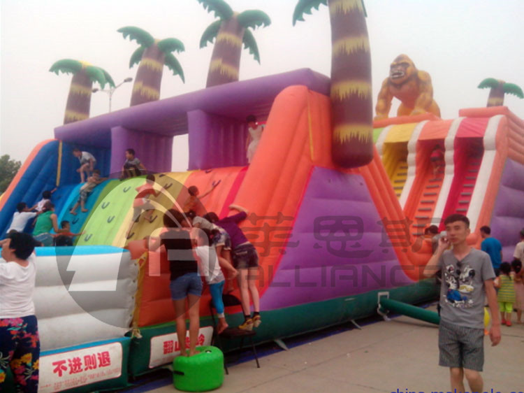 大型充气玩具是游乐场中必不可少的游乐项目,能够吸引孩子们,对于大型充气玩具的设计问题,大家也要了解下,下面是经营大型充气玩具要考虑的几点建议。 好的大型充气玩具会让孩子玩耍过程更长久,让孩子玩的开心,此外,好的大型充气玩具能提供适当的感官刺激,例如:特别的声响、不同的触感、明亮的色彩、及形状等,孩子也可以借着玩具学到物体的基本概念:大小、重量、颜色、平衡等。所以,现在的大型充气玩具深受儿童喜爱。 大型充气玩具造型可爱,颜色丰富,玩法多样。孩子们从玩耍中获得探索和认知,会得到一种成就感,如此一来,他们便会养成一中勇于追求挑战的品质。 郑州莱恩斯游乐设备有限公司主要研发生产大型充气玩具, 充气滑梯,充气冲关设备,卡通气模,充气水上游乐设备等,欢迎有需要的客户咨询。